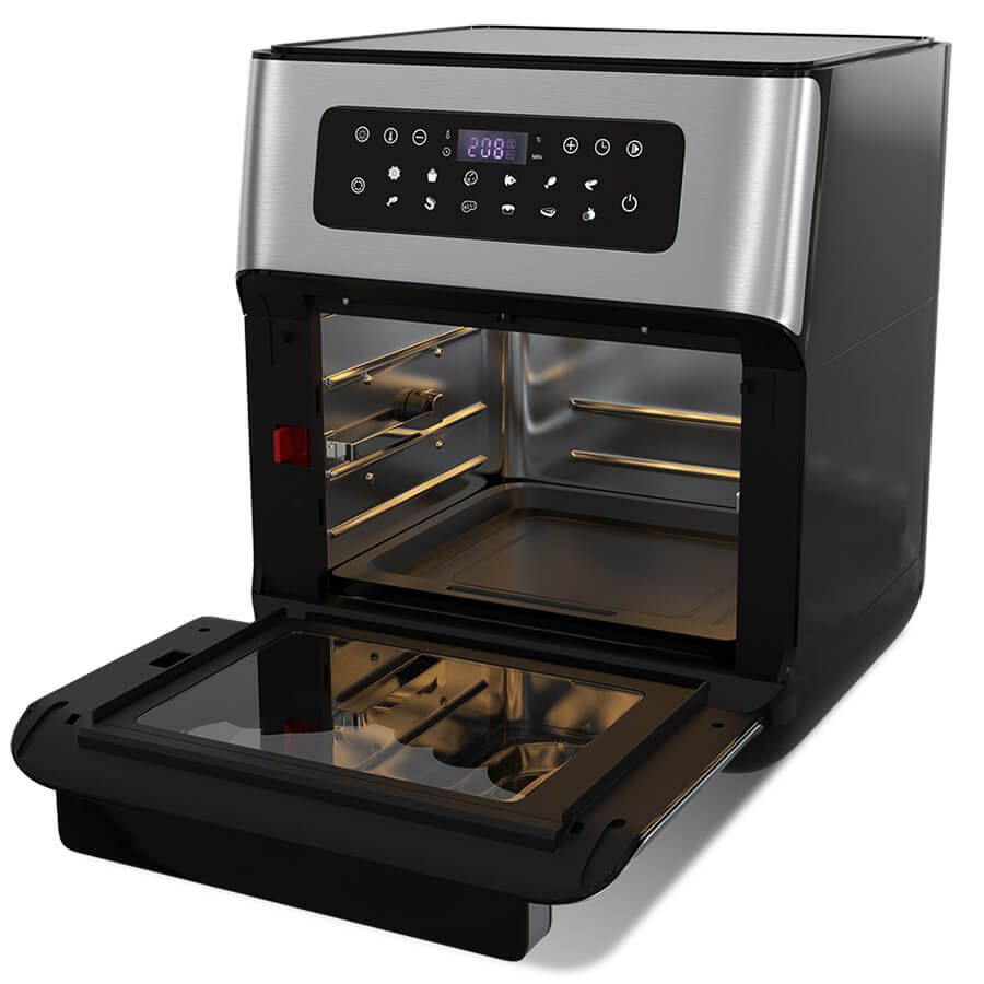- Dung tích siêu lớn 10L – Nướng nguyên con gà/vịt/ngan, làm pizza size lớn, chiên nhiều khay khoai tây cùng lúc cho cả nhà hoặc tiệc. Lợi ích: Tiết kiệm thời gian nấu nướng, tiện lợi cho gia đình đông người hoặc tổ chức bữa ăn gia đình.<
